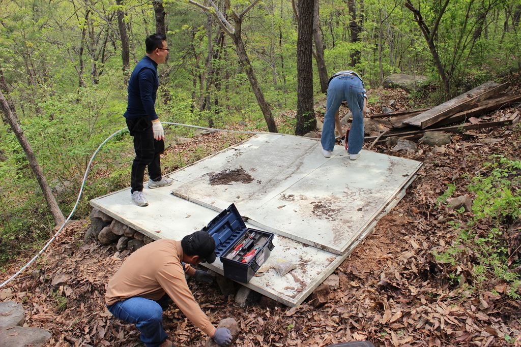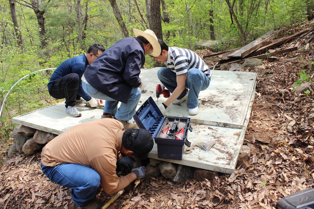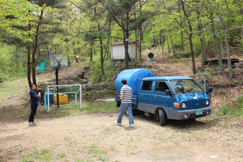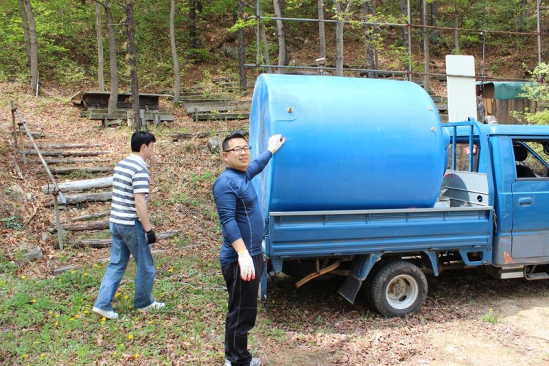 캠프장에 새로 구입한 물탱크를 설치하였습니다.