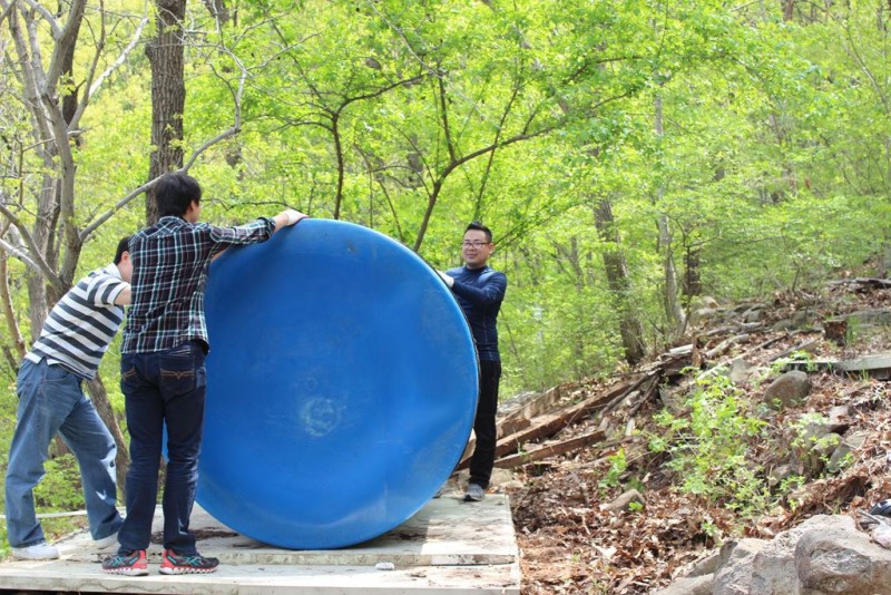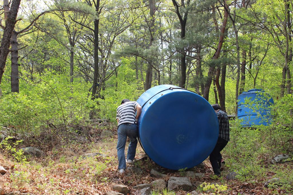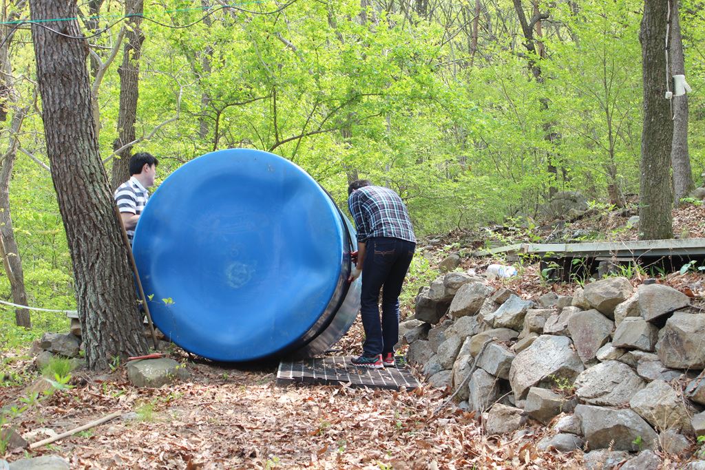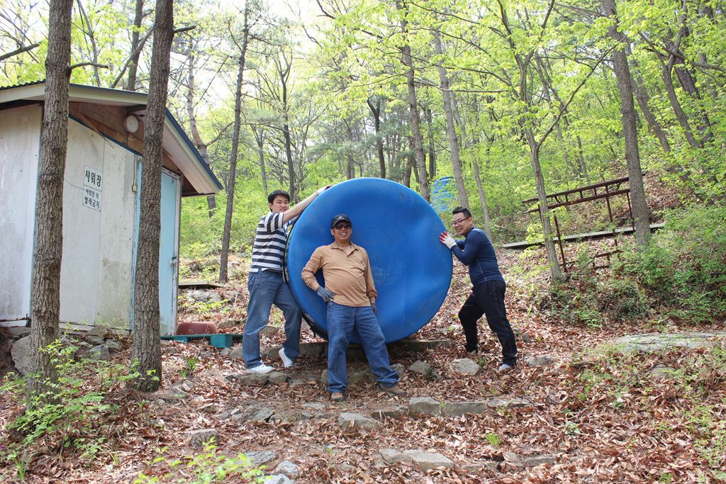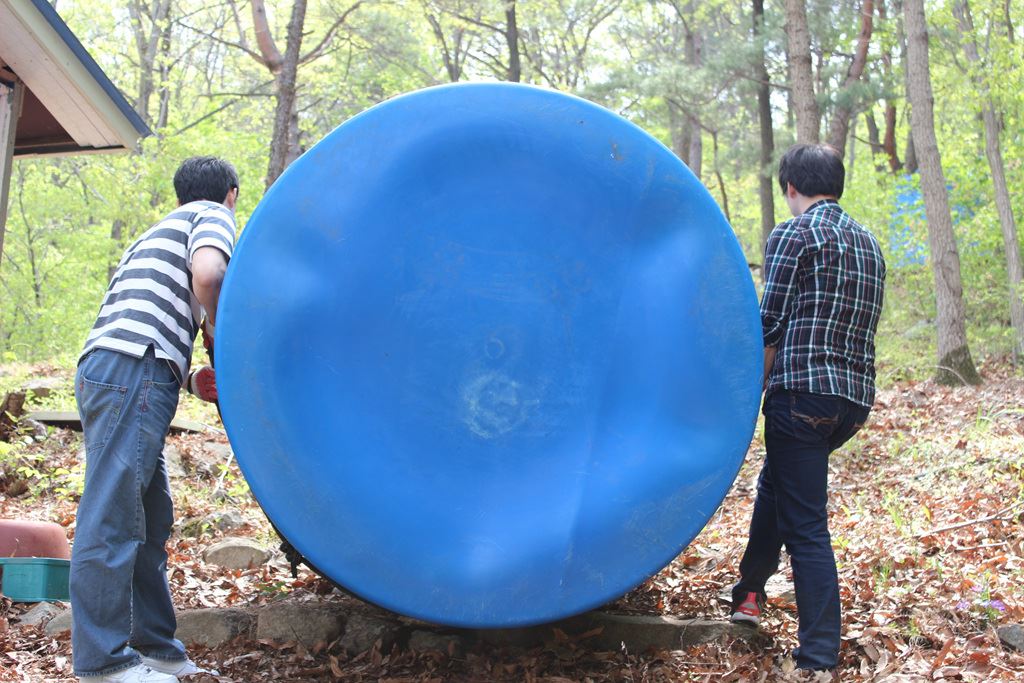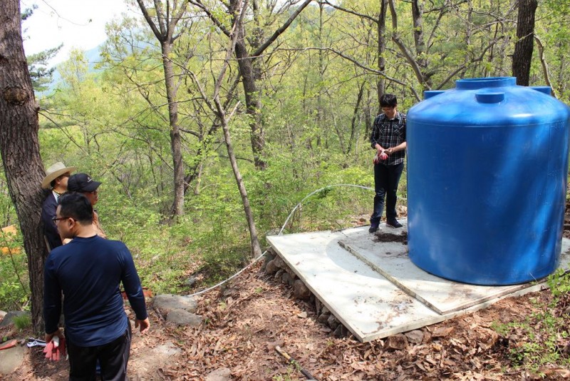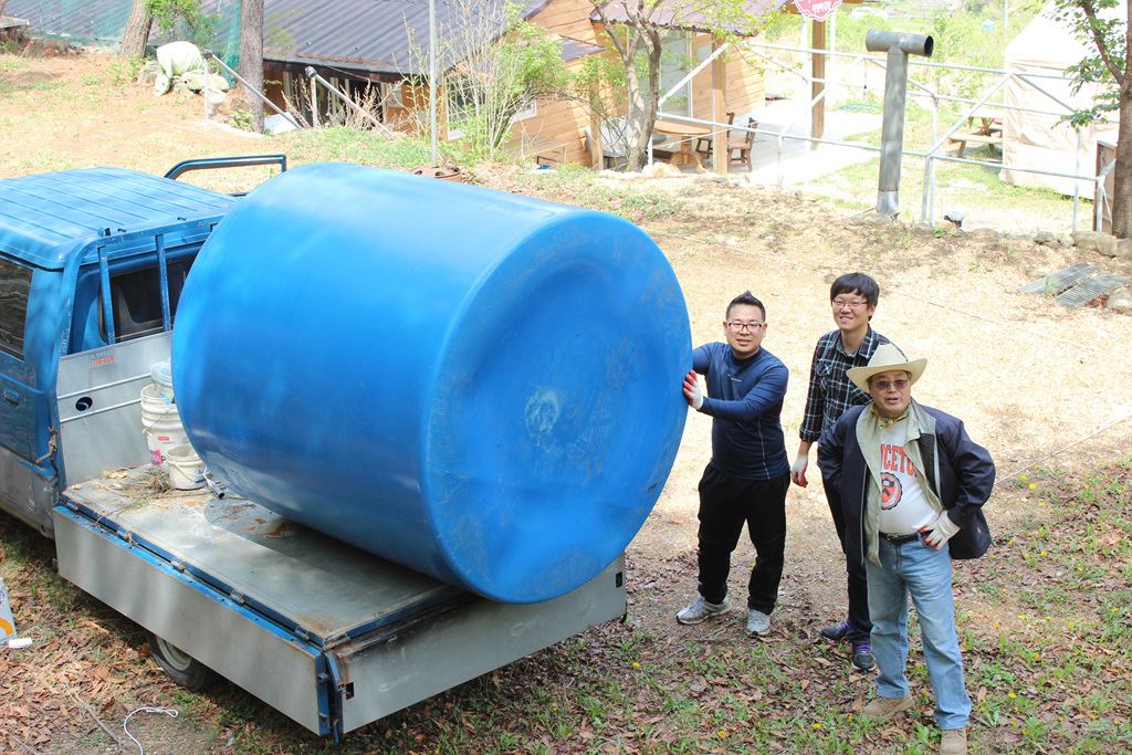 캠프장에 새로 구입한 물탱크를 설치하였습니다.
