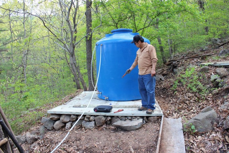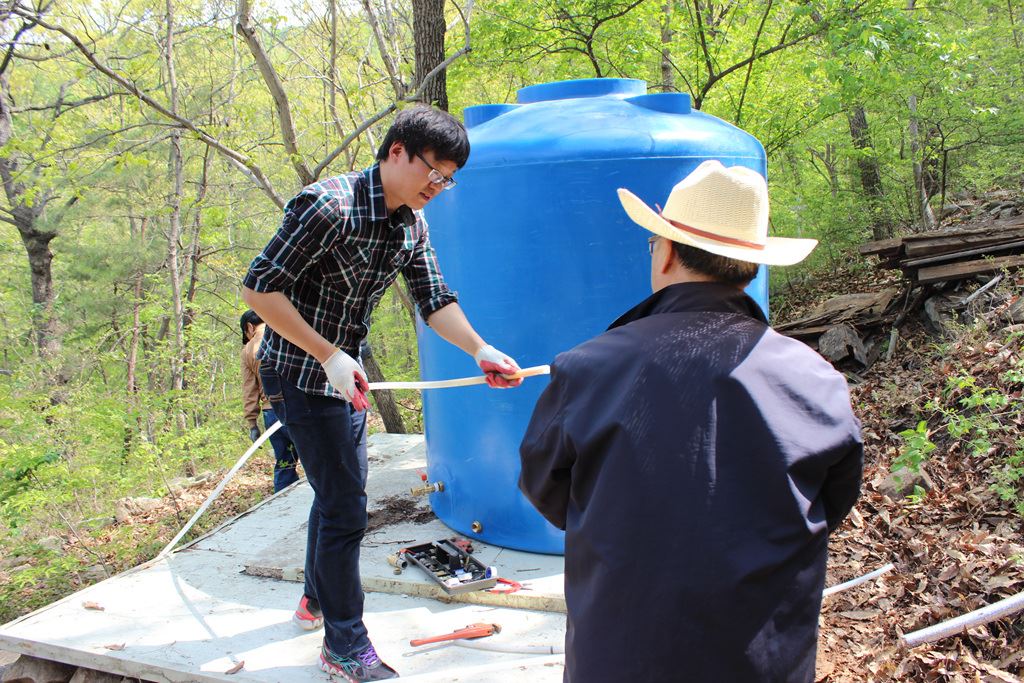 캠프장에 새로 구입한 물탱크를 설치하였습니다.
