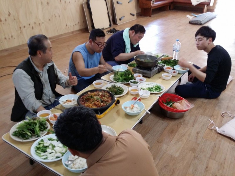 오늘따라 고기보다는 부추를 많이 먹던 명노빈 형제님... 다들 의아해 하며 야채를 많이 먹어야 한다고